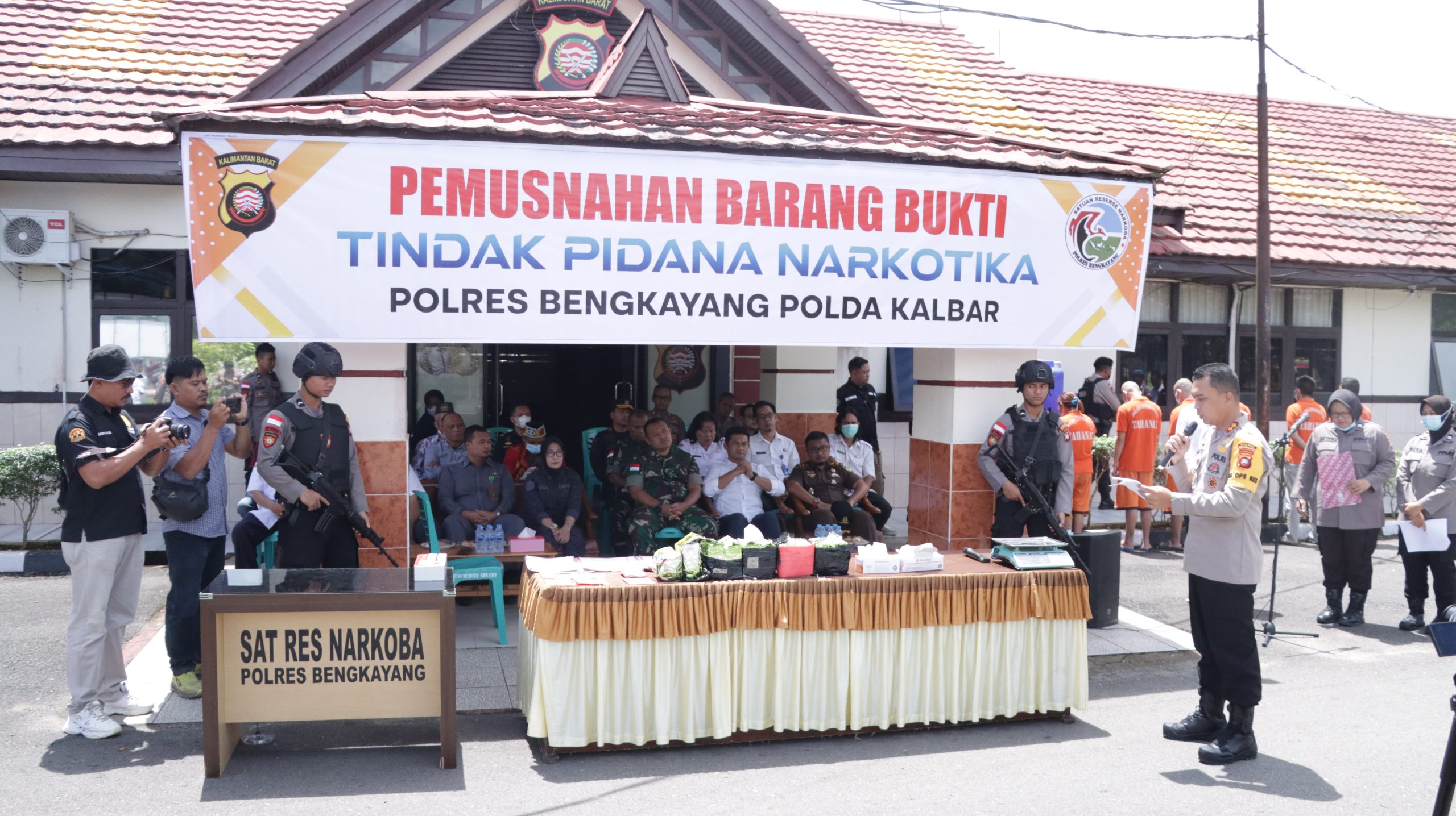 Pemusnahan barang bukti tersebut dipimpin langsung oleh Kapolres Bengkayang dengan didampingi Pejabat Utama Polres Bengkayang dan dihadiri Wadirresnarkoba Polda Kalbar, Bupati Bengkayang diwakili PJ. Sekda Kab. Bengkayang, Ketua DPRD Kab. Bengkayang, Dandim 1202 Bengkayang, Kepala Kejaksaan Negeri Bengkayang, Ketua Pengadilan Negeri Bengkayang, Kepala BNNK Bengkayang, Kepala Rutan Kelas IIB Bengkayang, Kepala KPPBC TMP Jagoi Babang, Kepala Dinas Kesehatan Kab. Bengkayang, Kapolsek Jagoi Babang, Ketua DAD Kab. Bengkayang, Ketua Lembaga Anti Narkotika Kab. Bengkayang, Tokoh Agama, Penasehat Hukum Tersangka serta unsur Media.