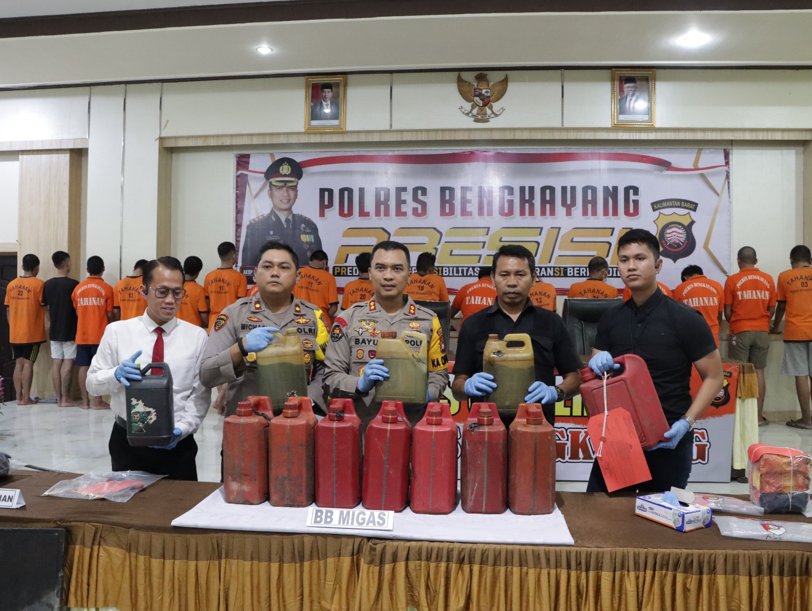 Bengkayang, Kalbar – Melalui Konferensi Pers yang digelar di Aula Tunggal Panaluan, Selasa (4/7/23) siang, Kapolres Bengkayang membeberkan pengungkapan kasus penyalahgunaan Bahan Bakar Minyak (BBM) jenis pertalite.
