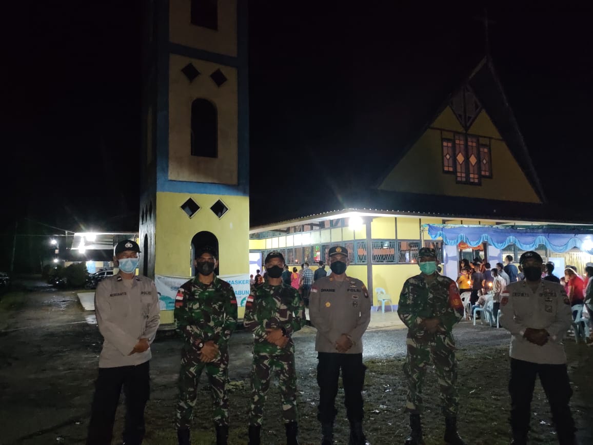 polres bengkayang, polsek jagoi babang melakukan pengamanan di tempat ibadah saat perayaan malam natal di wilkum polsek jagoi babang