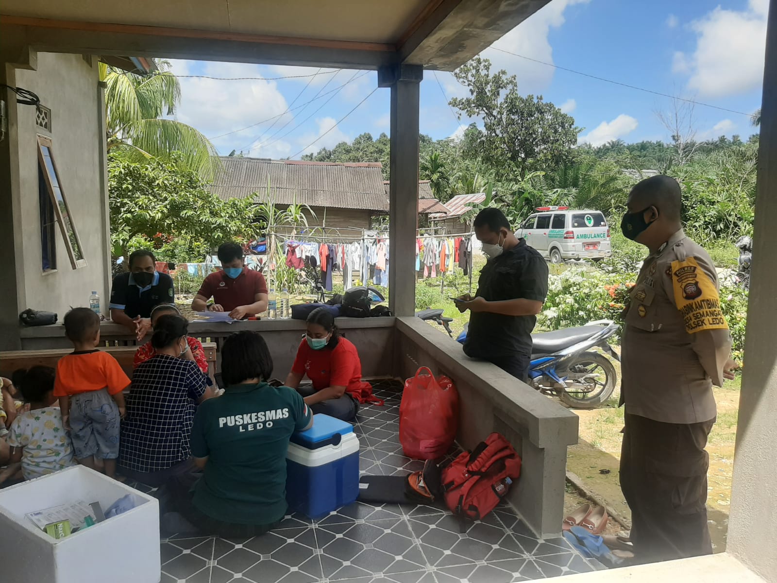 Seperti yang terlihat Bripka Ignasius Guntur dan tenaga kesehatan puskesmas ledo sedang mendatangi rumah-rumah warga masyarakat kecamatan ledo yang belum divaksin.