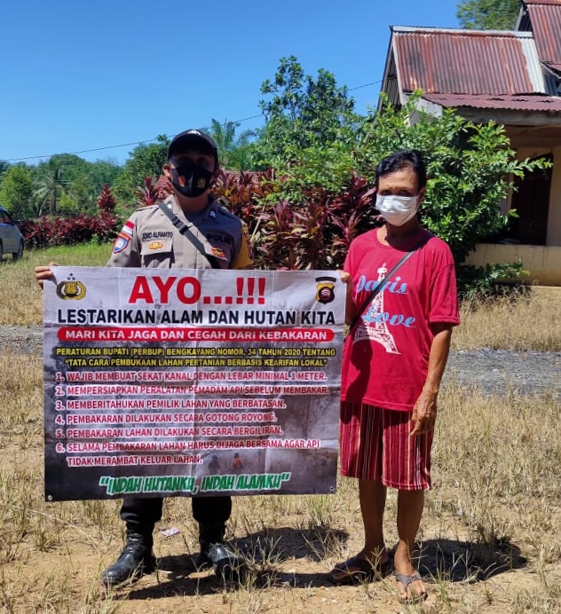 “Tata cara pembukaan lahan dengan cara membakar sebenarnya sudah ada aturannya yaitu Peraturan Bupati Bengkayang Nomor: 34 tahun 2020 tentang Tata Cara Pembukaan Lahan Pertanian Berbasis Kearifan Lokal”. Demikian dijelaskan oleh Petugas Bhabinkamtibmas Polsek Ledo Briptu Joko. Hal tersebut diungkap oleh Briptu Joko saat ditemui ketika melakukan sosialisasi perihal peraturan tersebut kepada masyarakat. “Sosialisasi ini kami lakukan agar masyarakat mengetahui dan mengerti sehingga dapat berpartisipasi dalam meminimalisir kejadian karhutla”; tuturnya.