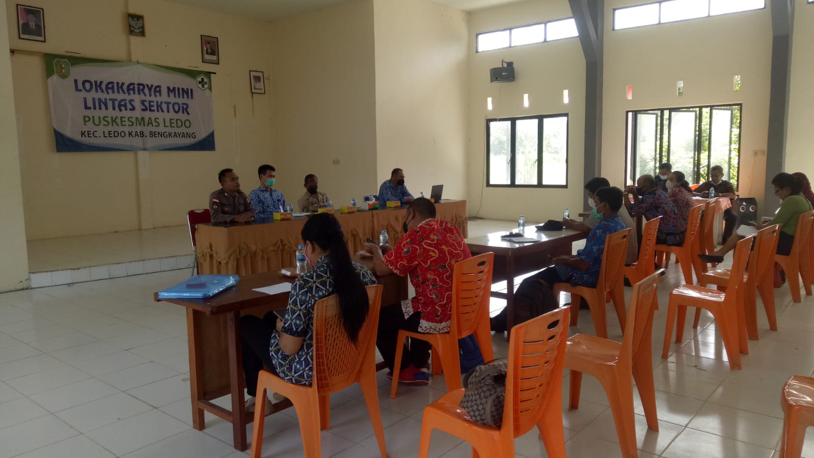 Dalam rangka evaluasi percepatan vaksinasi diwilayah Kec. Ledo, Puskesmas Ledo mengadakan Lokakarya Mini Lintas Sektoral. Kegiatan yang dilaksanakan di Aula kantor Camat Ledo ini dihadiri oleh Polsek Ledo yang diwakili oleh Kanit Samapta Polsek Ledo Bripka IG. Guntur, Jumat (17/12/2021).