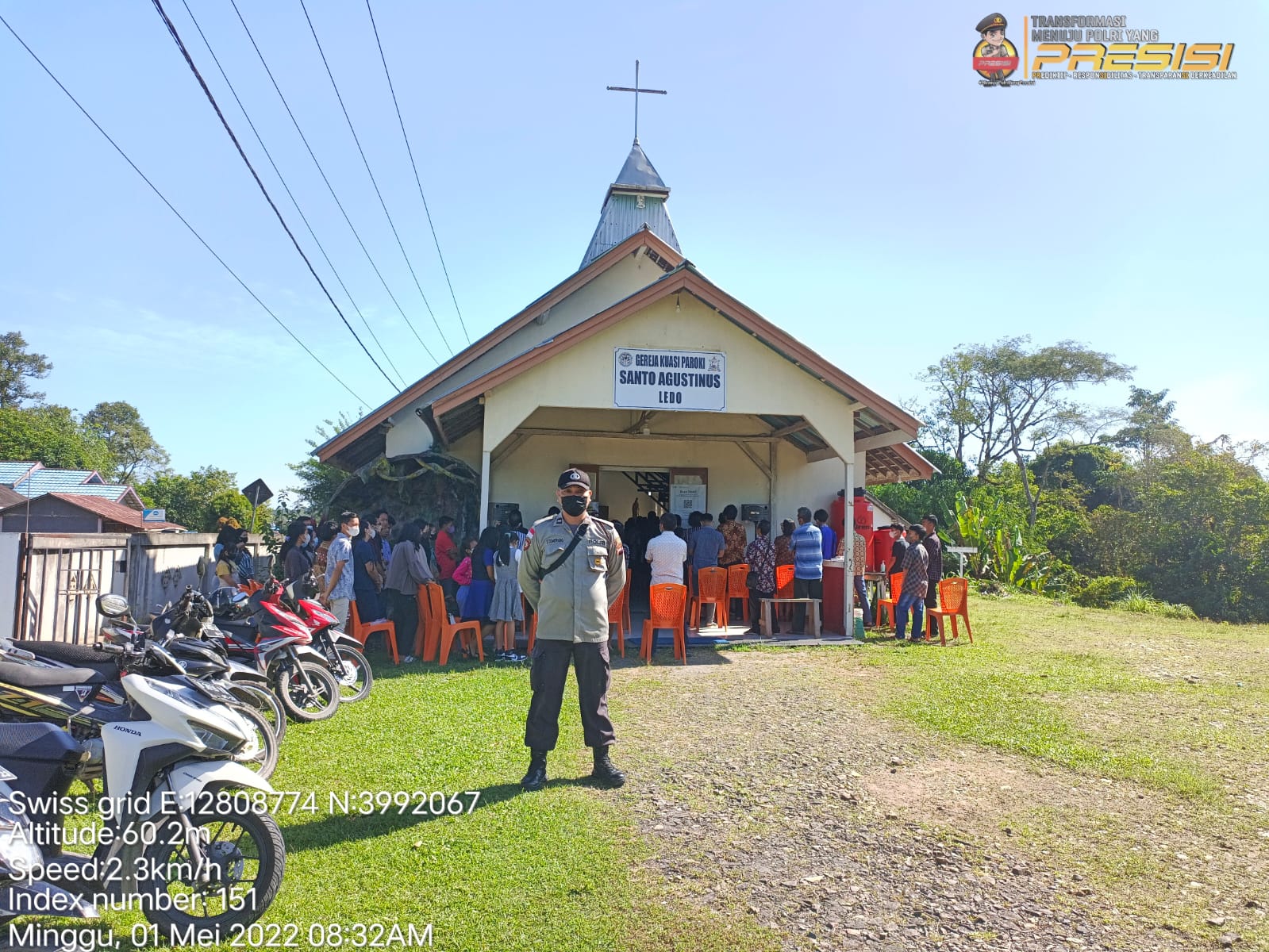 Personil Polsek Ledo Polres Bengkayang melaksanakan pengamanan di tempat-tempat ibadah umat Kristiani seperti gereja Katolik Santo Petrus dan Paulus Kec. Ledo. Selain melaksanakan pengamanan juga memonitor prosedur dan menyampaikan himbauan protokol kesehatan seperti penggunaan masker, membersihkan tangan baik dengan sabun dan air maupun penggunaan hand sanitizer juga pengecekan suhu tubuh dan penerapan menjaga jarak pada saat pelaksanaan ibadah.