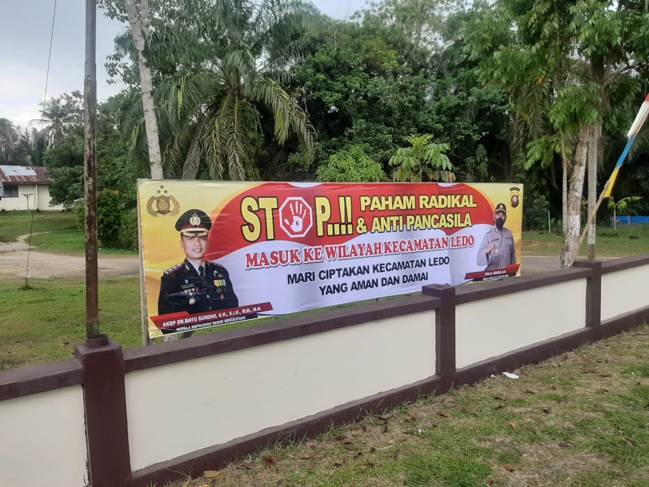 “Hal tersebut untuk mengajak seluruh elemen masyarakat untuk menutup ruang gerak paham radikalisme melalui imbauan-imbauan dipasang di spanduk”, kata Kapolsek Ledo Ipda M. Rokhim, S.H.