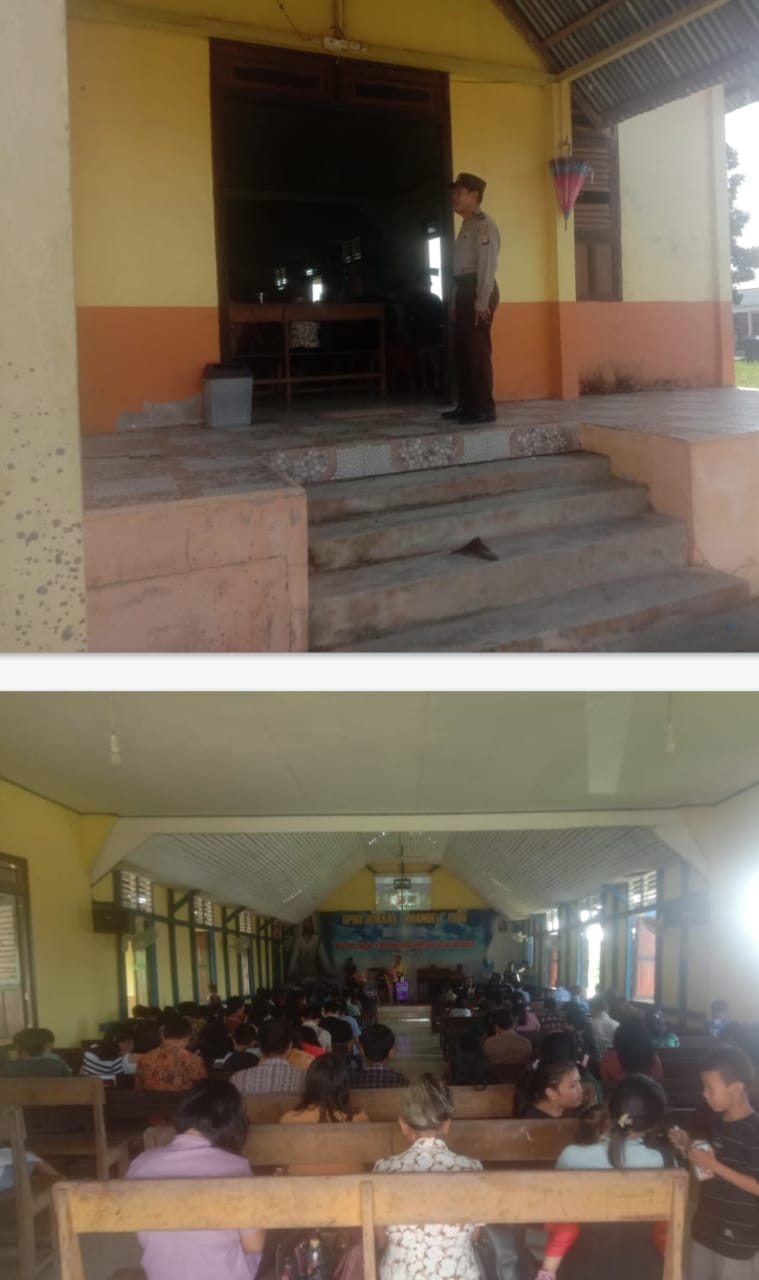 Mengingat kembali tugas sebagai anggota Kepolisian sebagai pelindung, pengayom serta pelayan masyarakat, olehnya itu Ka SPKT 3 Polsek Ledo Polres Bengkayan Ka Jaga AIPTU I MADE dan AIPDA HERLIANSYAH melaksanakan kegiatan pengamanan di gereja sebagai bentuk pelayanan kepada masyarakat khususnya kepada umat Nasrani yang sedang melaksanakan ibadah.