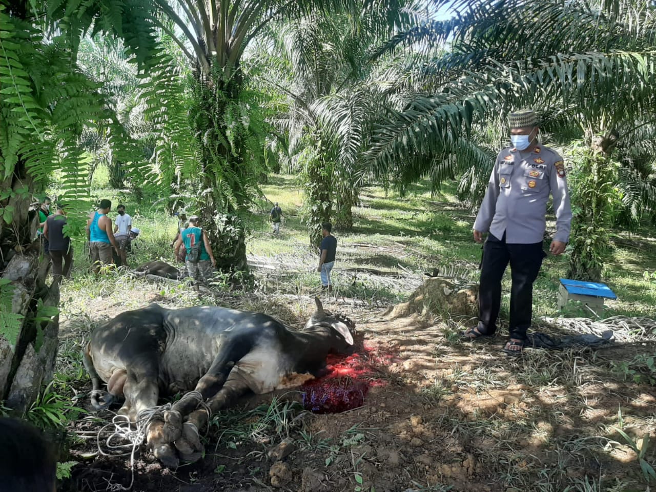 Dalam rangka peringati hari raya IDUL ADHA 1442 H. Polsek Ledo melaksanakan Pam pemotongan hewan kurban. (Selasa/20/7/2021)