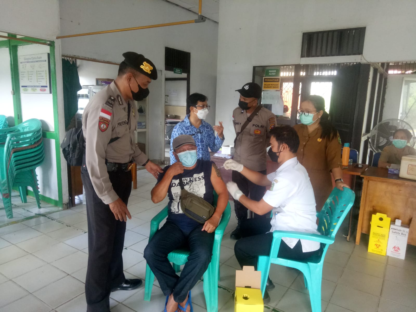 Dengan kehadiran Personel Polsek Monterado di Puskesmas dapat memastikan kegiatan pemberian dosis lanjutan atau booster berjalan aman dan lancar.