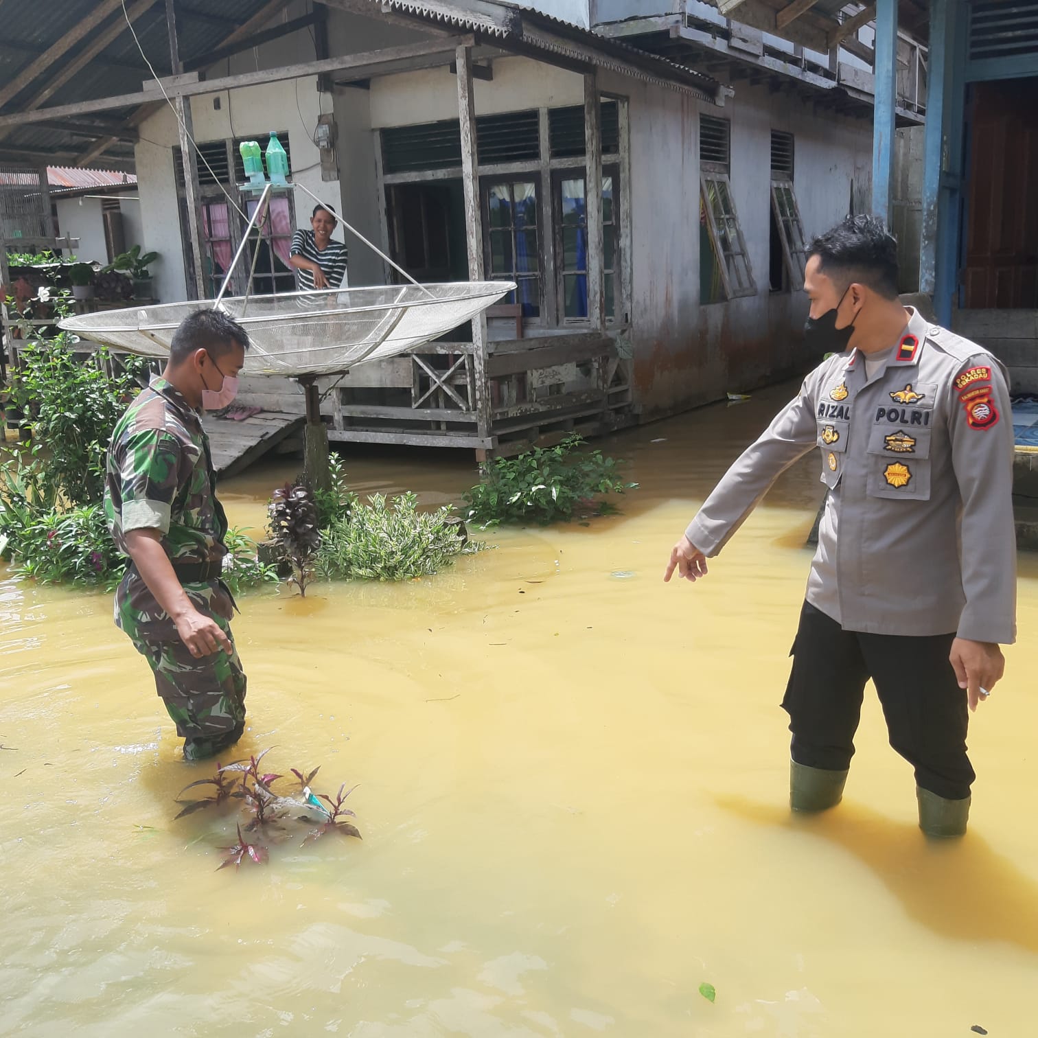 Untuk mengantisipasi hal-hal yang tidak diinginkan, personel Polsek Nanga Mahap turun langsung ke sejumlah desa yang saat ini terendam akibat banjir, Minggu 9 Oktober 2022.