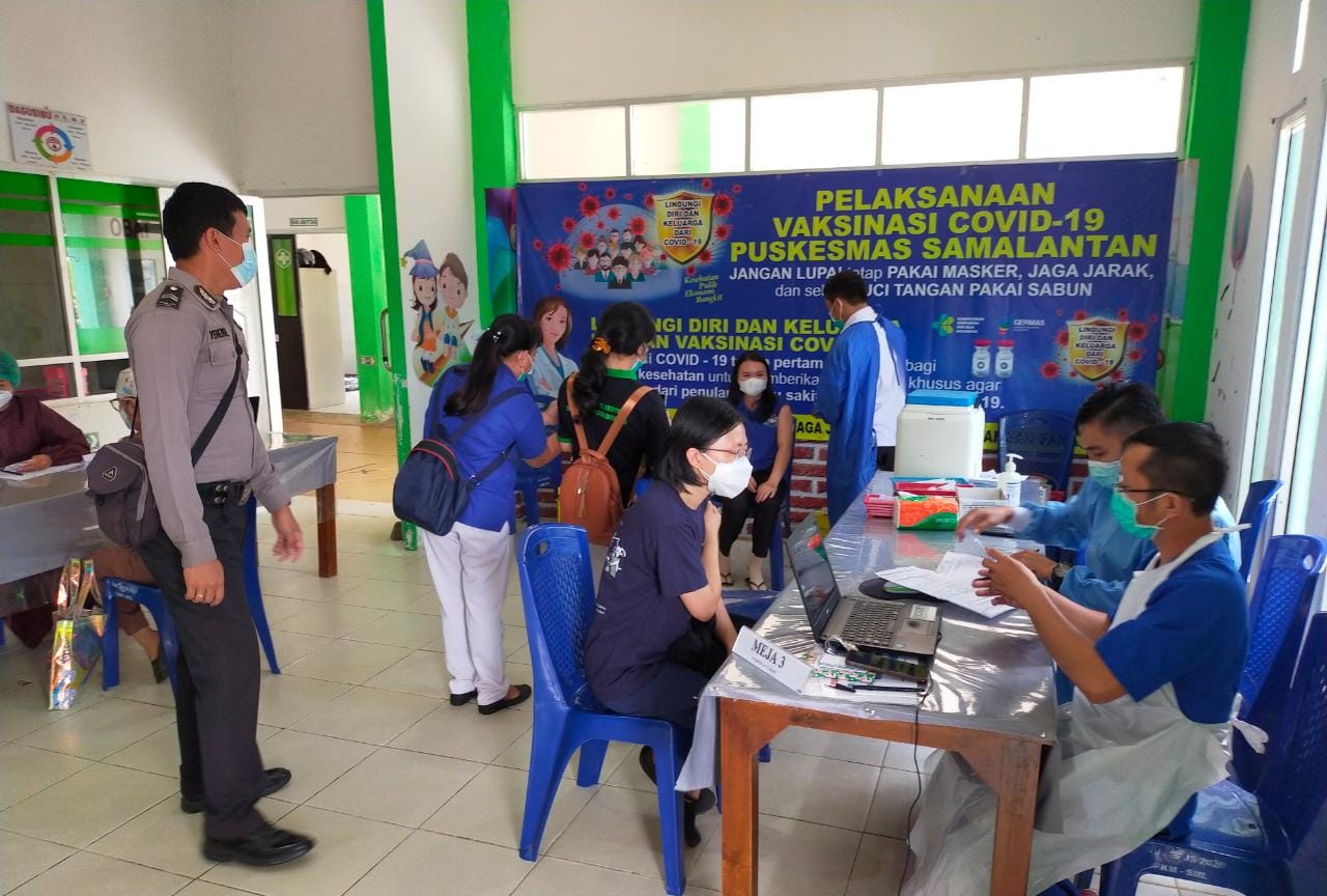 Polres Bengkayang – Polsek Samalantan. Kepolisian Sektor Samalantan Polres Bengkayang lakukan pengawasan pelaksanaan vaksinasi covid 19 di Puskesmas Samalantan, Rabu 25 Agustus 2021 pagi.