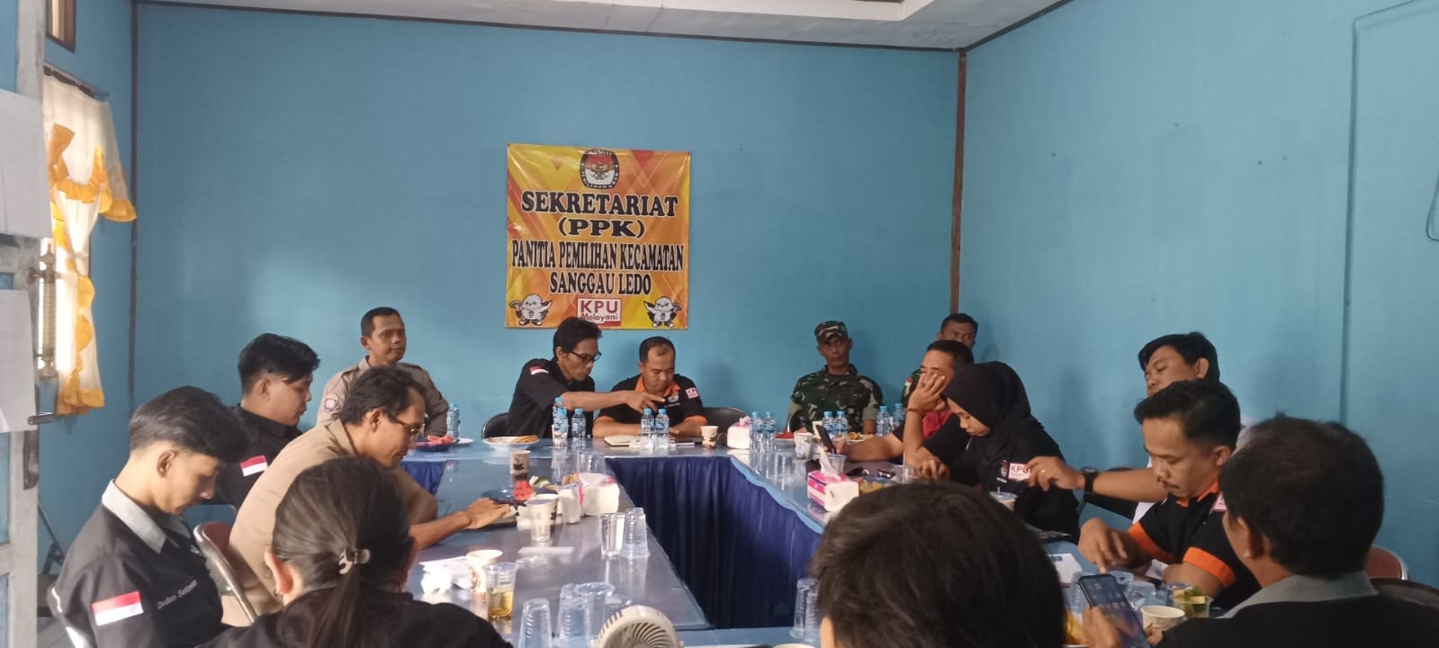 Ketua PPK Sanggau Ledo Sdr. Fidelis Olen mengatakan bahwa maksud dan tujuan kegiatan rapat ini adalah dalam rangka berkoordinasi dengan Forkopincam Sanggau Ledo beserta Ketua PPS dan Anggotanya Se-Kecamatan Sanggau Ledo dalam menghadapi tahapan pemilu tahun 2024, perlu dukungan dari semua pihak agar rangkaian pemilu berjalan aman dan kondusif.