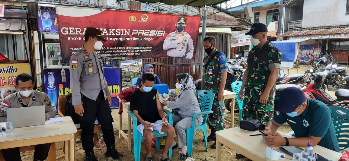 Polres Bengkayang – Polsek Sanggau Ledo Polres Bengkayang Polda Kalbar mempercepat program vaksin Covid-19 terutama bagi warga melalui program vaksinasi natal 2021.