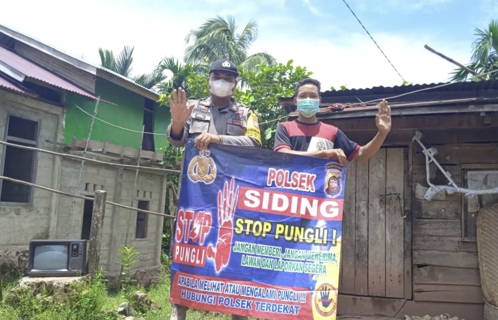 Kapolsek Siding polres Bengkayang Polda Kalbar Ipda Bambang Rudiyanto mengatakan,” Kegiatan himbaun tentang Stop Pungli dalam rangka mewujudkan pelayanan publik yang bersih tanpa ada praktek Pungli, kita lakukan pendekatan terhadap masyarakat, kemudian sambangi kantor desa juga sampaikan pelayanan tanpa ada pungutan liar hal itu di lakukan melalui tugas Bhabinkamtibmas ke desa binaan dan personel lainny agar daerah kita bebas dari praktek pungli ,”ucapnya”.