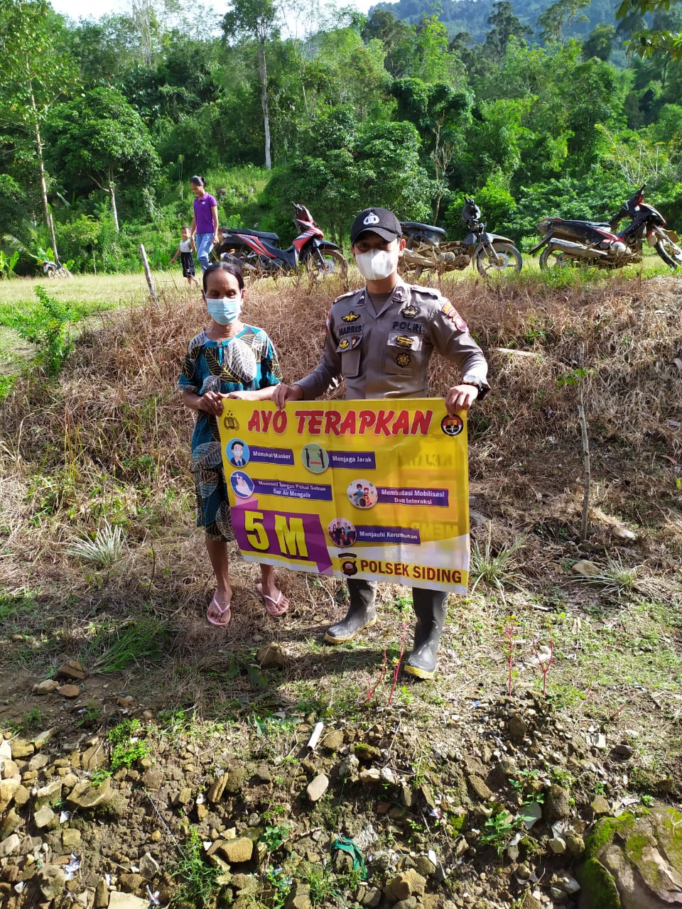 Dalam upaya untuk mendisiplinkan masyarakat terkait kepatuhan terhadap protokol kesehatan yang dikeluarkan oleh pemerintah, Personel Polsek Siding Bripda Dainel Harris tidak henti-hentinya menyambangi masyarakat untuk memberikan himbauan agar selalu menggunakan masker pada saat beraktivitas diluar rumah.