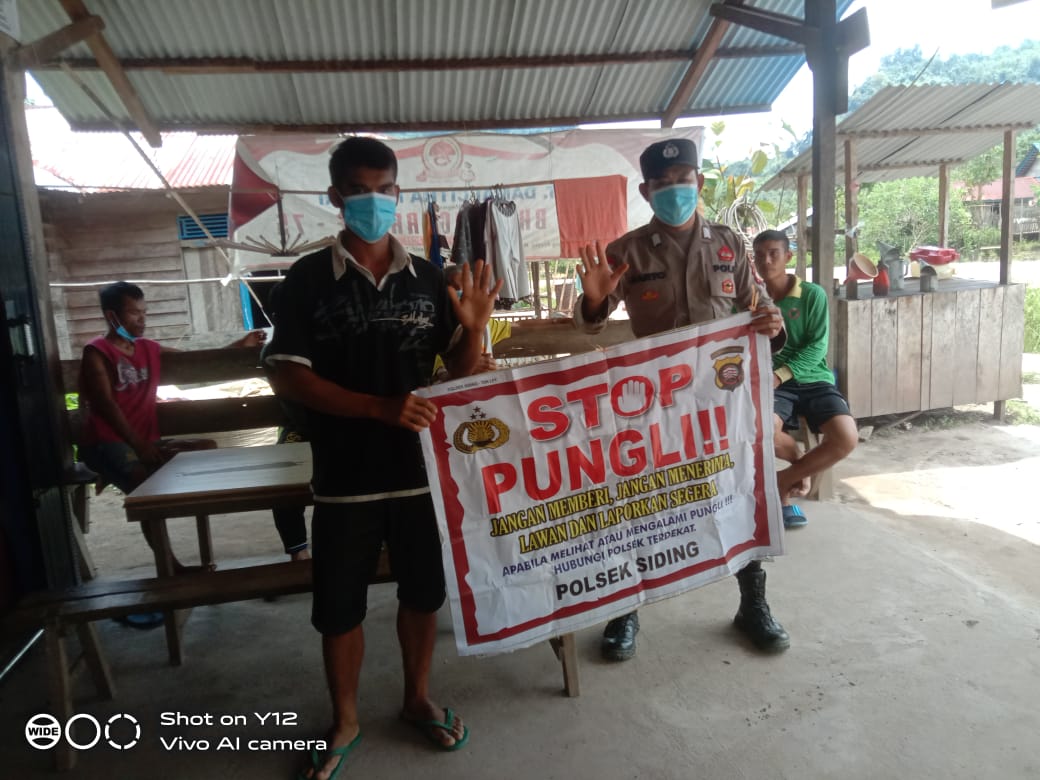 Kapolsek Siding Ipda Bambang Rudiyanto melalui Bhabinkamtibmas Bripka Bartolomeus mengatakan, walau tengah dilanda pandemi Covid-19, kegiatan tersebut tetap dilaksanakan untuk memberikan pemahaman kepada seluruh lapisan masyarakat agar menghindari praktek pungutan liar yang tidak sesuai dengan ketentuan.