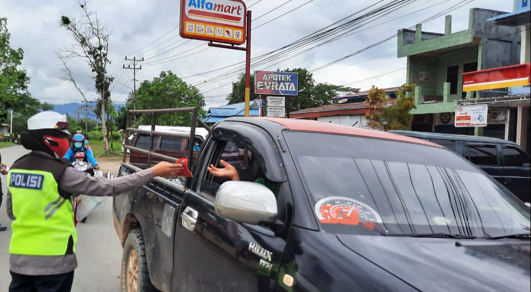 “Kegiatan patroli menggunakan mobil Dinas dan membagikan masker dilaksanakan di jalan Sanggau Ledo tepat nya depan Mapolres Bengkayang dengan melakukan peneguran dan langkah nyata membagikan masker kepada masyarakat,” Kata Kanit Dikmas Lantas Ipda Pariani.