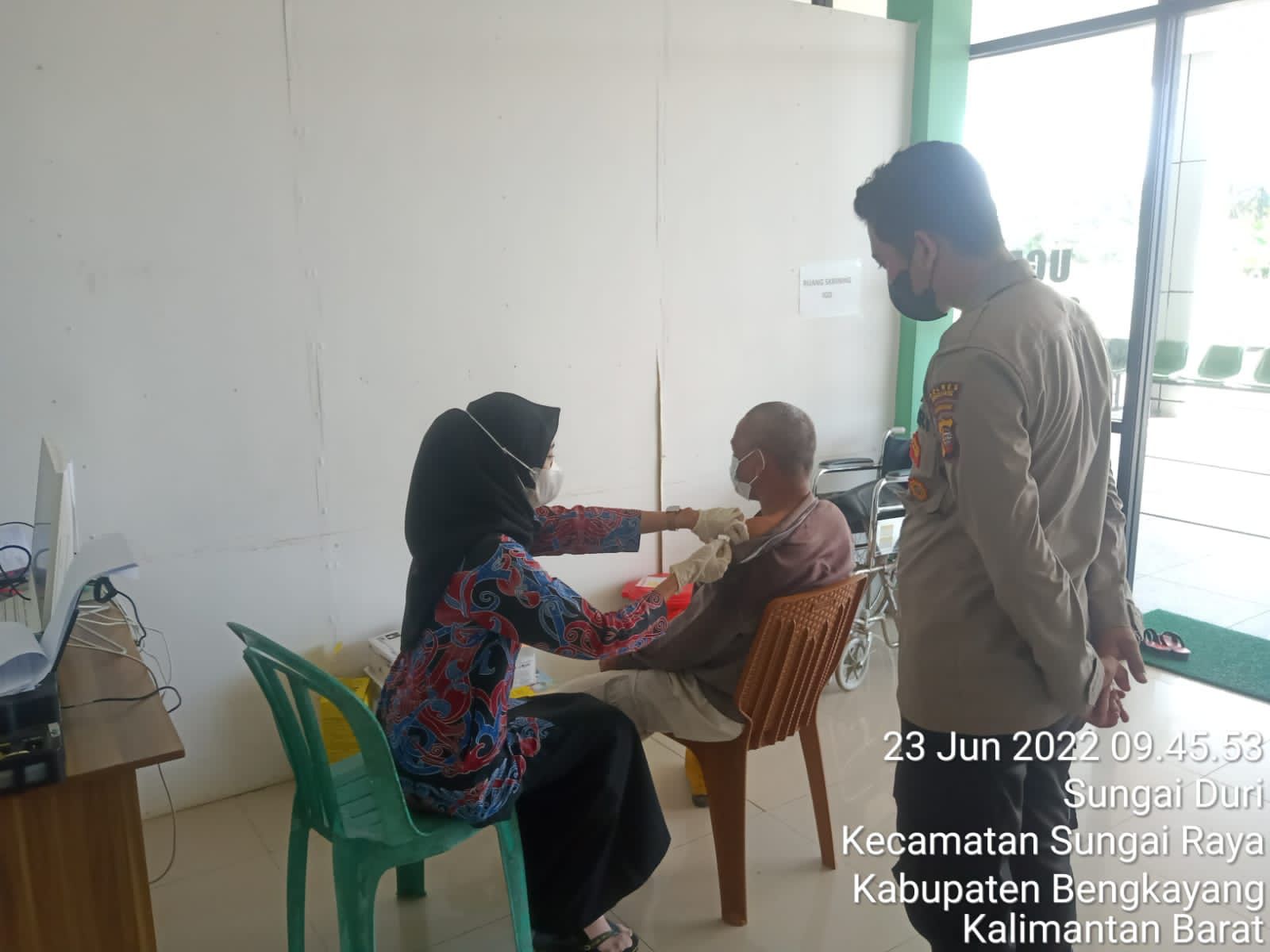 Pada hari Kamis tanggal 23 Juni 2022, Ps.Kanit Sabhara Aipda M.Kahar.K bersama Bripda aditiya melaksanakan kegiatan pantau jalannya pengamanan Vaksin Covid – 19 di Puskesmas Sungai Duri.