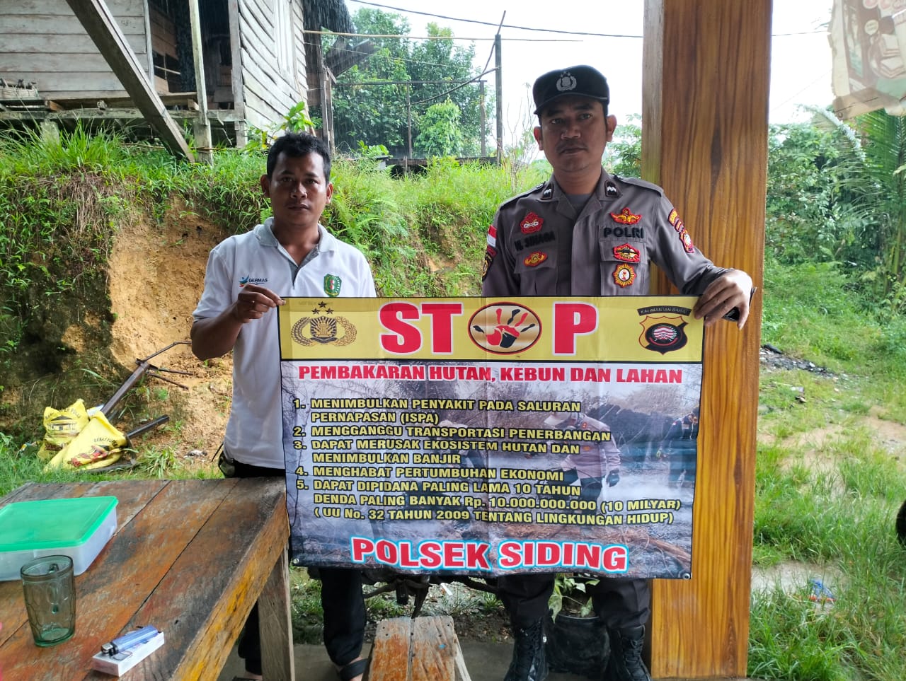 Kapolsek Siding Ipda Oman Kurnianto melalui PS.Kanit Sabhara Polsek Siding, Aipda Warton Sinaga mengatakan,” kegiatan himbaun Karhutla terus kami lakukan baik itu secara langsung kami sampaikan atau melalui pemasangan spanduk larangan Karhutla di wilayah kecamatan Siding kabupaten Bengkayang, sekalipun saat itu memasuki musim penghujan himbaun terus kami lakukan, dengan tujuan segenap masyarakat mendukung pelaksanaan tugas personel yang turun kedesa dalam rangka pembinaan kamtibmas,”ucapnya”.