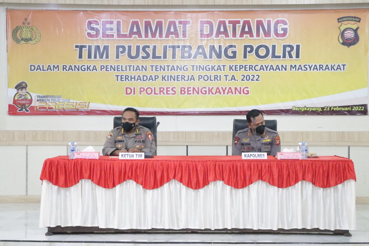 Polres Bengkayang – Polres Bengkayang Polda Kalbar mendapat kunjungan dari Tim Puslitbang Polri dalam rangka penelitian tingkat kepercayaan masyarakat terhadap kinerja Polri TA. 2022 di Polres Bengkayang, Rabu (23/02/22).