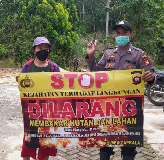 Di lain tempat, Kapolsek Capkala Iptu Wargo Suwarso mengatakan bahwa salah satu upaya Kepolisian dalam mencegah kebakaran hutan dan lahan yakni dengan memberikan himbauan atau pesan-pesan kamtibmas kepada warga langsung melalui sambang dialogis dengan masyarakat.
