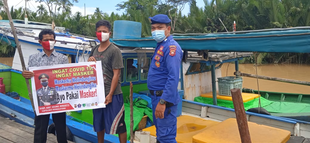 Tidak lupa juga personel Satpolairud Polres Bengkayang menyampaikan himbauan Protokol kesehatan Covid 19 dengan 5M, -memakai masker, -mencuci tangan -menjaga jarak -mengurangi mobilitas dan menjauhi kerumunan,