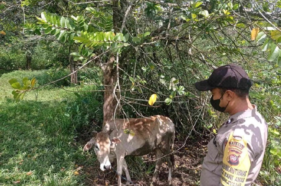 Seperti yang dilakukan oleh Aipda Danis Bhabinkamtibmas Ds.Bani Amas Bengkayang ,Minggu (31/7/2022) mendatangi salah satu warga yang memiliki peternakan sapi.