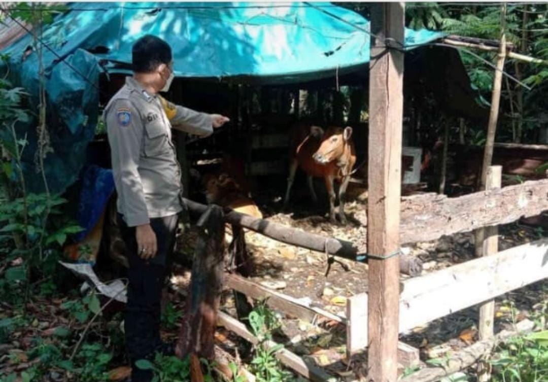 Seperti yang dilakukan oleh Bripka Deri Bhabinkamtibmas Ds.Tirta Kencana Polsek Bengkayang ,Rabu (27/7/2022) mendatangi salah satu warga yang memiliki peternakan sapi.