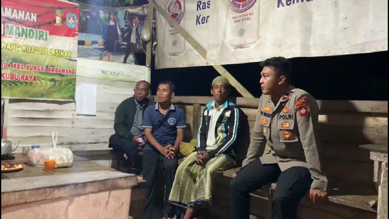 Ia pun tak lupa memberikan himbauan kamtibmas pada petugas pos kamling yang sedang melaksanakan monitoring situasi wilayah pemukiman warga Gg. Parit Adam 1 Desa Sungai Ambawang