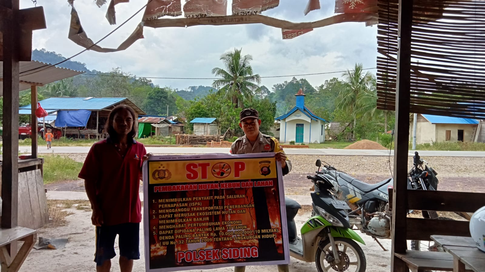 Polsek Siding Polres Bengkayang Polda Kalimantan Barat lakukan himbauan Stop Karhutla, Kamis (11/5/23).