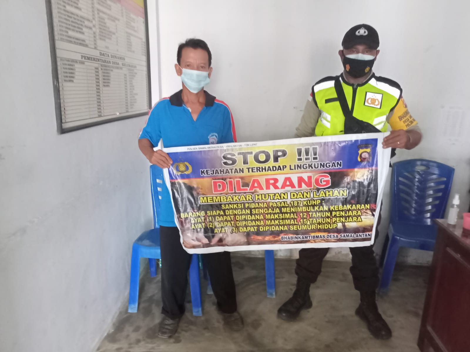 Kegiatan ini terus digencarkan Polsek Samalantan, mengantisipasi terjadinya kebakaran hutan dan lahan (Karhutla) di wilayah hukumnya lewat imbauan atau sosialisasi tentang larangan membakar hutan dan lahan.