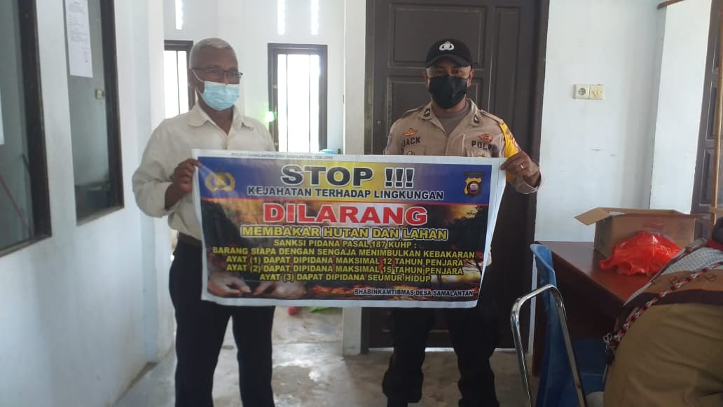Kegiatan ini terus digencarkan Polsek Samalantan, mengantisipasi terjadinya kebakaran hutan dan lahan (Karhutla) di wilayah hukumnya lewat imbauan atau sosialisasi tentang larangan membakar hutan dan lahan.