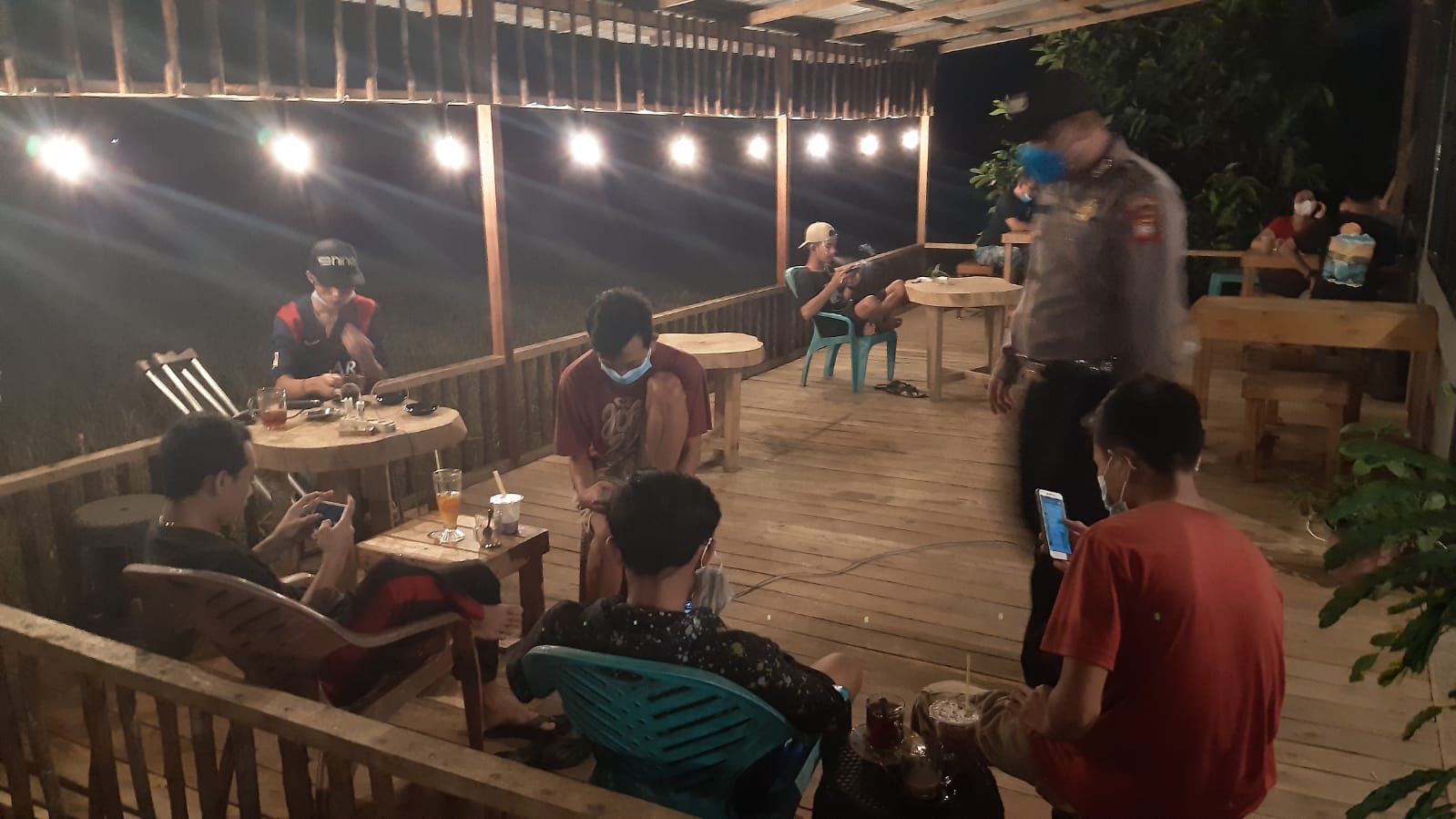 Sejumlah tempat seperti cafe, warung serta warga berkumpul didatangi Polisi berpatroli, kemudian diimbau untuk patuhi dan taati prokes covid 19, ini agar masyarakat tetap waspada serta terhindar dari virus corona.