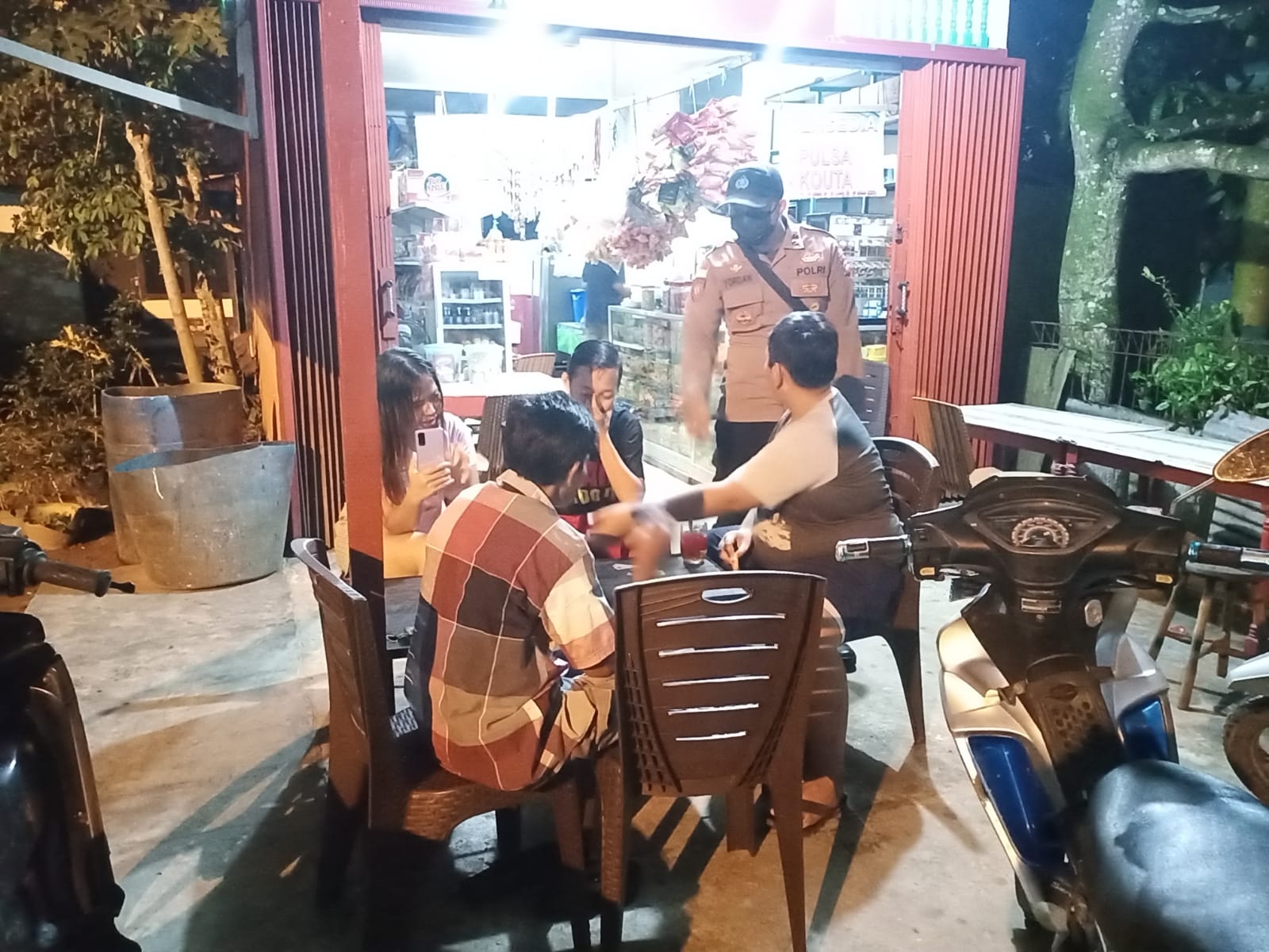 Selain jaga kamtibmas tetap kondusif, pengawasan wilayah kali ini juga menyambangi warga yang berkumpul, jalin kemitraan serta menyampaikan pesan kamtibmas.