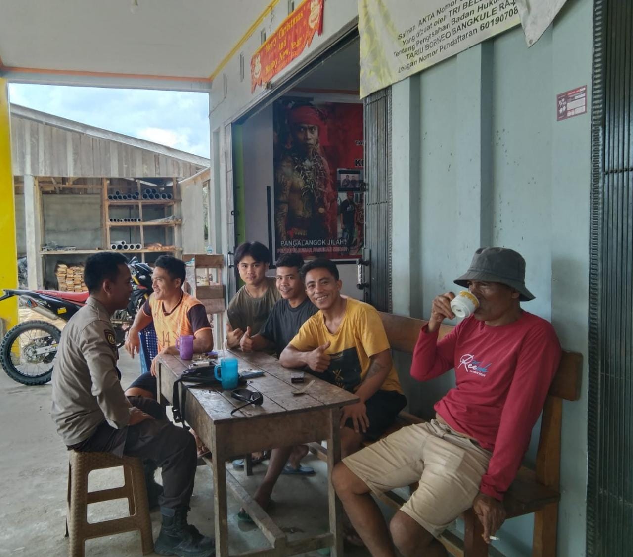 Kegiatan rutinitas Bhabinkamtibmas menyambangi warga sebagai kegiatan rutinitas kegiatan bhabinkamtibmas di setiap desa, pada kegiatan tersebut Briptu Aris Ngopi bersama warga sambil mendengarkan curhat dari warga tersebut, masyarakat sangat senang aparat kepolisian selalu aktif dan selalu hadir di tengah-tengah masyarakat. kegiatan tersebut bertujuan untuk mendekatkan polisi kepada warga,agar warga merasa aman adanya kehadiran polisi di tengah masyarakat.