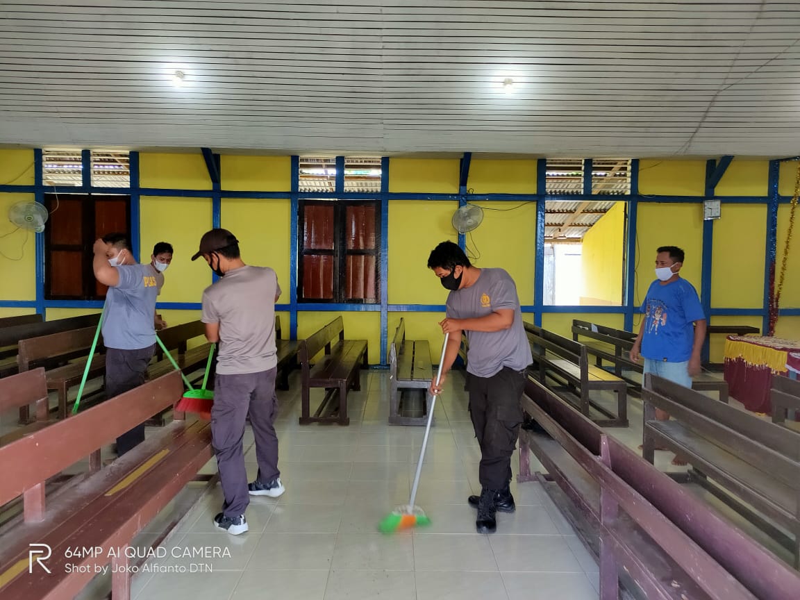 Setelah Masjid Darrul Fiqri bersih, Kapolsek dan anggota bergeser ke Gereja Katolik Santo Petrus dan Paulus dilanjutkan pada rumah ibadah yang lain di kawasan Ledo. Para anggota Polsek terlihat mengepel dan menyapu di tempat rumah-rumah ibadah yang berdebu akibat musim kemarau.
