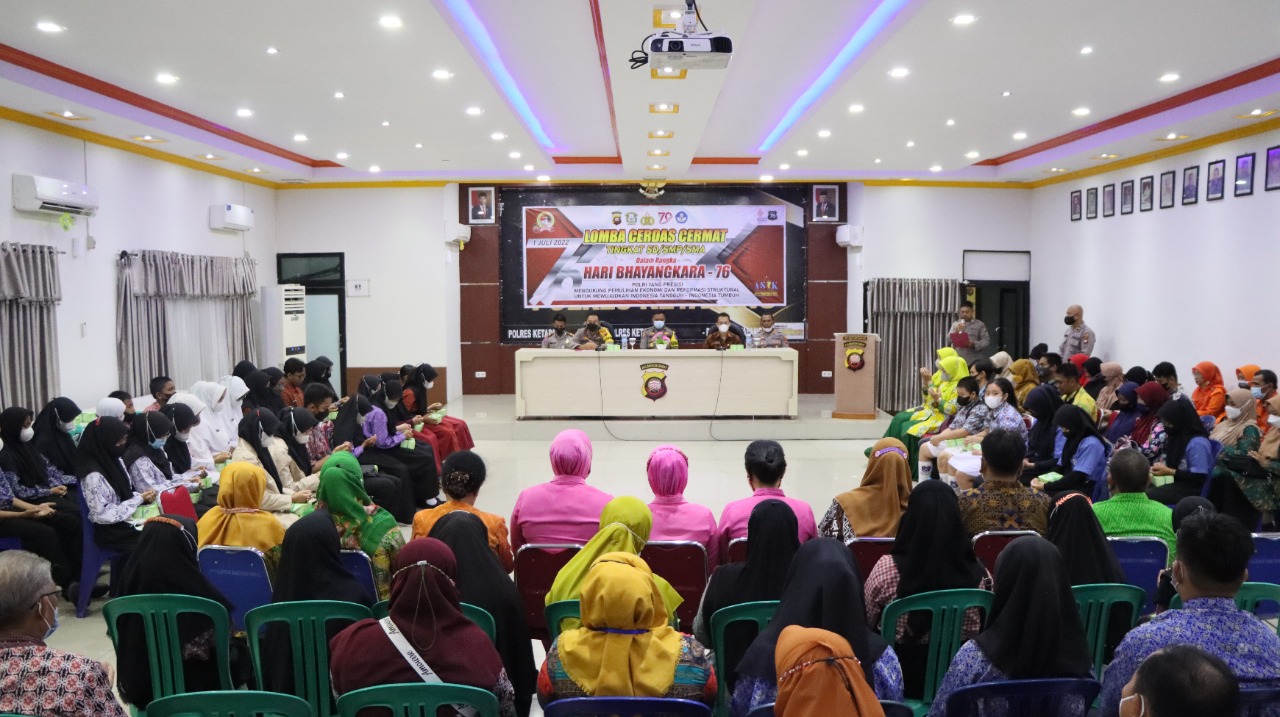 Ketapang – Serangkaian acara di adakan Polres Ketapang untuk memperingati Hari Bhayangkara ke 76 tahun 2022, salah satunya lomba cerdas cermat yang melibatkan para pelajar yang ada di kota Ketapang. Acara berlangsung di gedung Aula Polres Ketapang Kamis (16/06/2022).