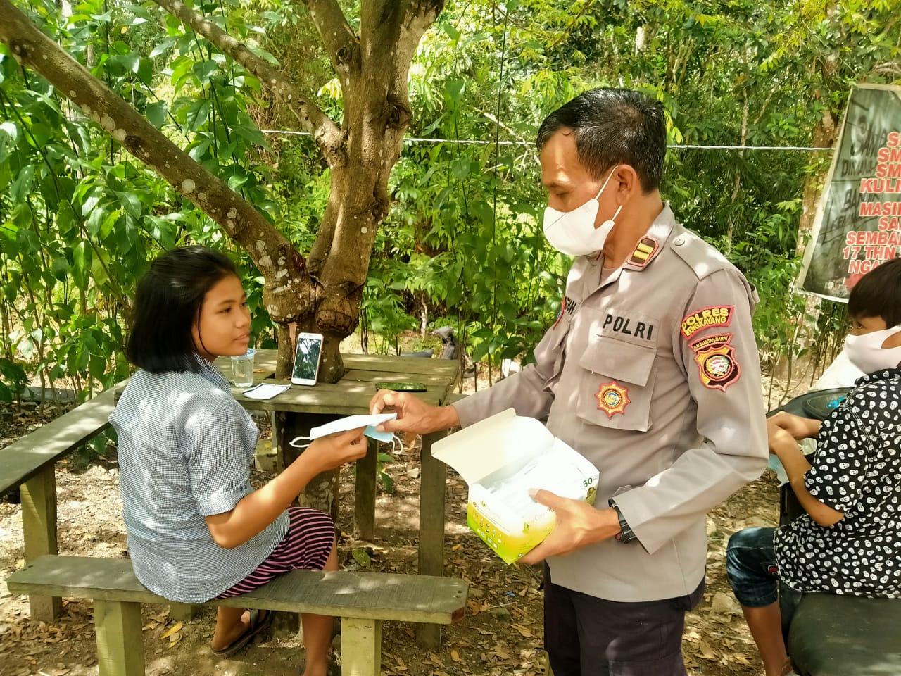 “Bentuk kepedulian kepada masyarakat khususnya kecamatan teriak kasat binmas bersama anggotanya membagikan masker kepada masyarakat teriak supaya selalu menjaga protokol kesehatan dengan selalu memakai masker ungkap “Iptu Teguh wiyono