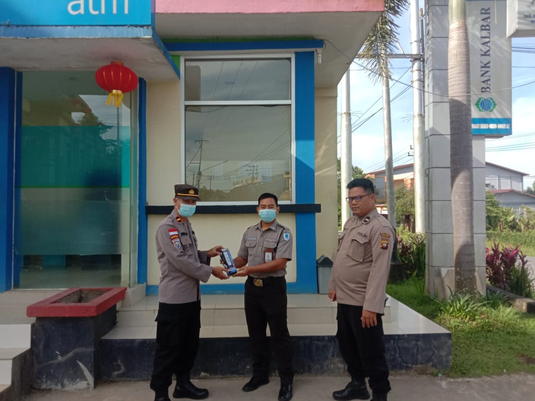 Kaur Bin Ops Sat Binmas Polres Bengkayang polda kalbar bersama anggotanya sambangi Satpam bank kalbar bengkayang di pos penjagaan guna memberikan sarana kontak berupa lampu emergency kamis (19/01/2023).