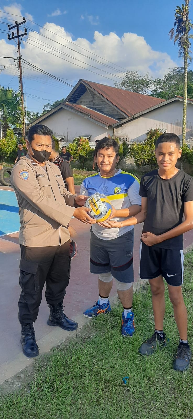 Kanit bintibsos Sat Binmas Polres Bengkayang Polda Kalbar peduli dengan generasi muda dengan memberikan bola volly untuk menambah semangat dengan fasilitas dalam berlatih menjadi pemain volly yang baik (20/07/2022).