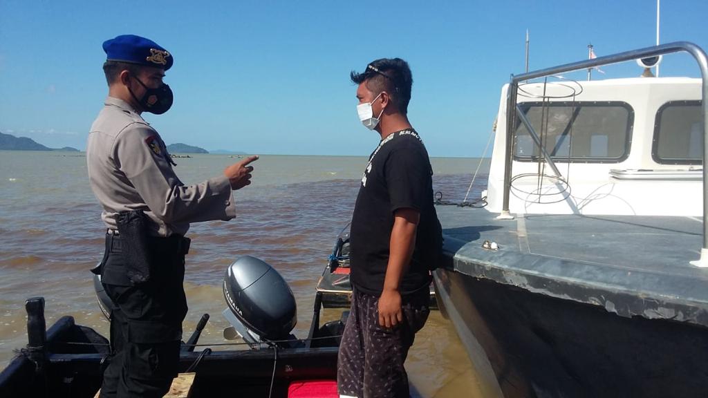 Imbauan penggunaan masker ini juga dilakukan personil Satuan Polisi Perairan Polres Bengkayang Polda Kalbar Bripka Elli Juwarsa pada saat menyambangi penumpang Kapal motor penyeberangan yang sedang sandar di Dermaga Teluk Suak, Rabu(05/08/20)
