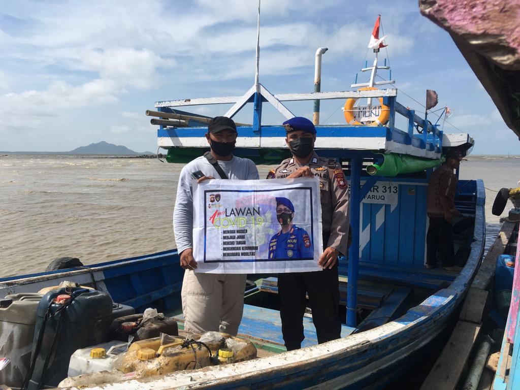 Mencegah penyebaran Covid-19 di wilayah pesisir Bengkayang, Personil Sat Polairud Polres Bengkayang melaksanakan sambang ke tempat – tempat yang selalu ramai ada aktivitas masyarakat seperti Dermaga penyebrangan Teluk Suak Desa Karimunting Kecamatan Sungai Raya Kepulauan untuk menyampaikan pesan-pesan kamtibmas diantaranya terkait pencegahan penyebaran covid-19, Rabu (29/09/2021).