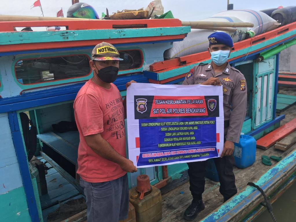 Terkait hal itu personil Sat Polairud Polres Bengkayang Polda Kalbar mengingatkan nelayan dan pelaku pelayaran mewaspadai cuaca buruk di Perairan Laut Bengkayang yg berbatasan langsung dengan Perairan Natuna, Rabu (20/04/2022).