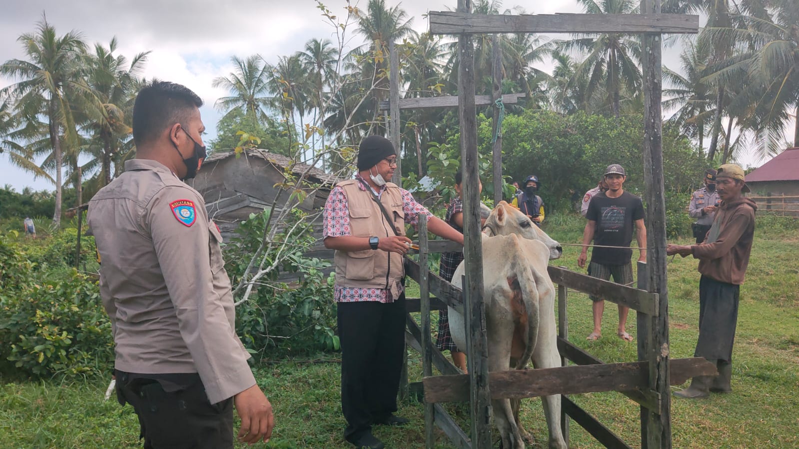 Ketapang – Dalam rangka menekan penyebaran Penyakit Mulut dan Kuku terhadap hewan ternak di wilayah Kota Ketapang Kapolres Ketapang AKBP YANI PERMANA S.I.K., M.H Melalui Kasubbagdalops Bagops Polres Ketapang AKP Bambang Hendri Utomo laksanakan kegiatan Penyuntikan Vaksinasi PMK Terhadap Hewan Ternak,Bertempat di kelurahan Desa Suka Baru Kecamatan Benua Kayong Kabupaten Ketapang pada Kamis 21 Juli 2022.