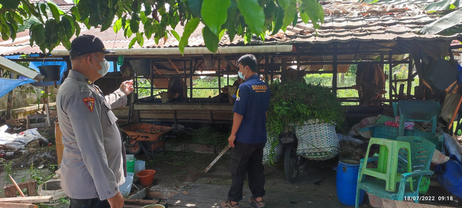 Bila ditemukan gejala pmk pada ternak agar segera berkoordinasi dengan Satgas OPS Aman Nusa II PMK Polresta Pontianak atau mantri hewan ternak. Senin, (18/07/2022)