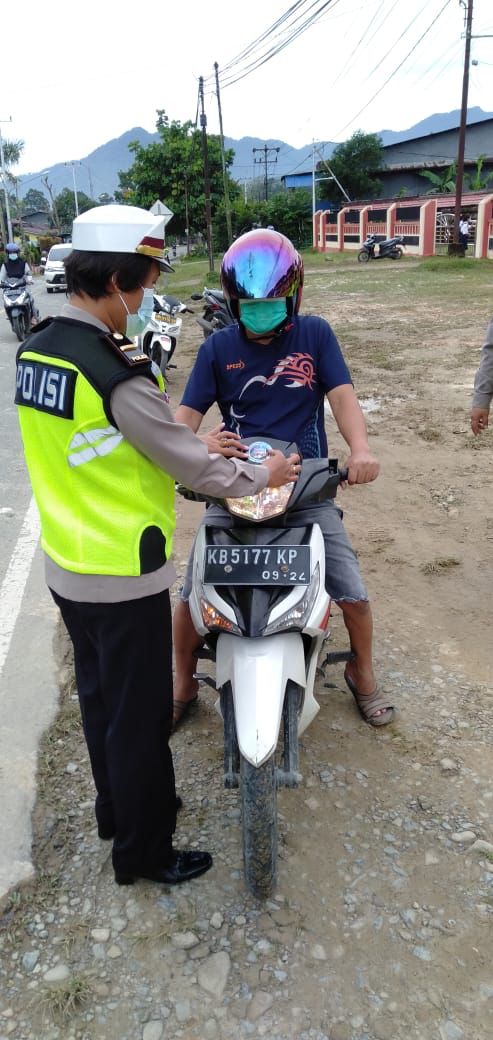 Terkait dengan masifnya penyebaran virus Covid -19 satuan lalu lintas Polres Bengkayang melaksanakan himbauan prokes, guna menekan perkembangan kasus positif Covid -19 di wilayah hukum Polres Bengkayang.
