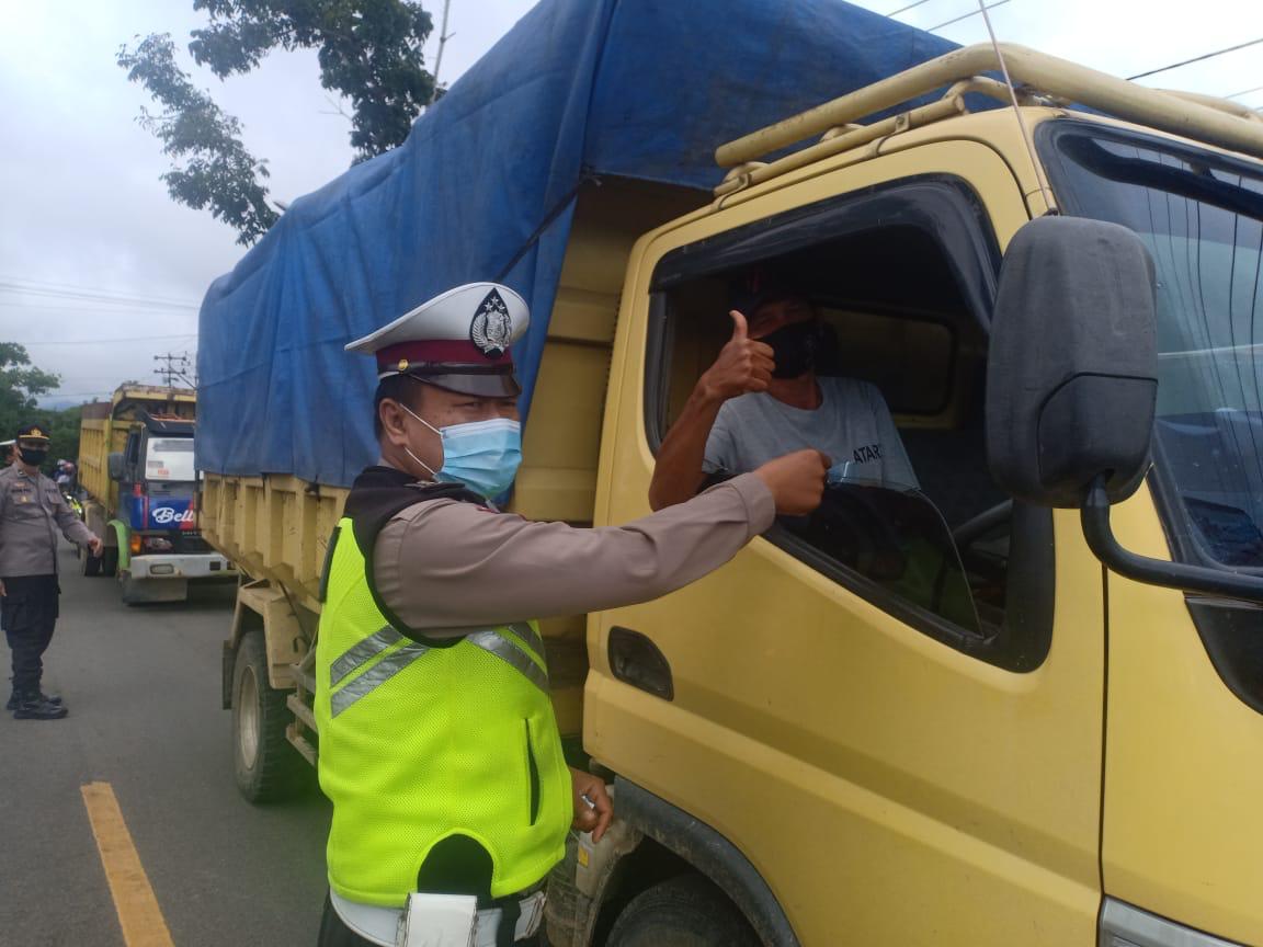 “Sebagai aksi kemanusiaan dalam wujud kepedulian mencegah penularan Covid-19,” ucap Kasatlantas.