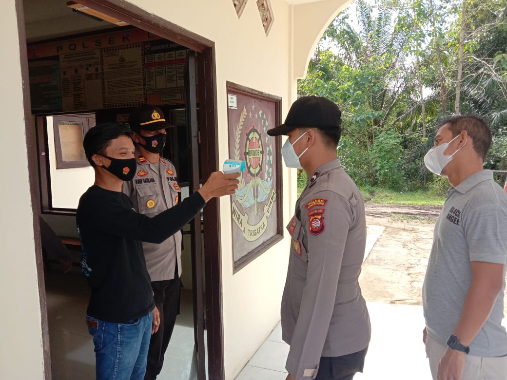 Kapolsek Ledo beserta Anggota Polsek Ledo disiplin menerapkan protokol kesehatan Covid19 dilingkungan Polsek Ledo sebagai langkah awal mendeteksi dan pencegahan penyebaran Covid-19. Senin, (07/06/2021).