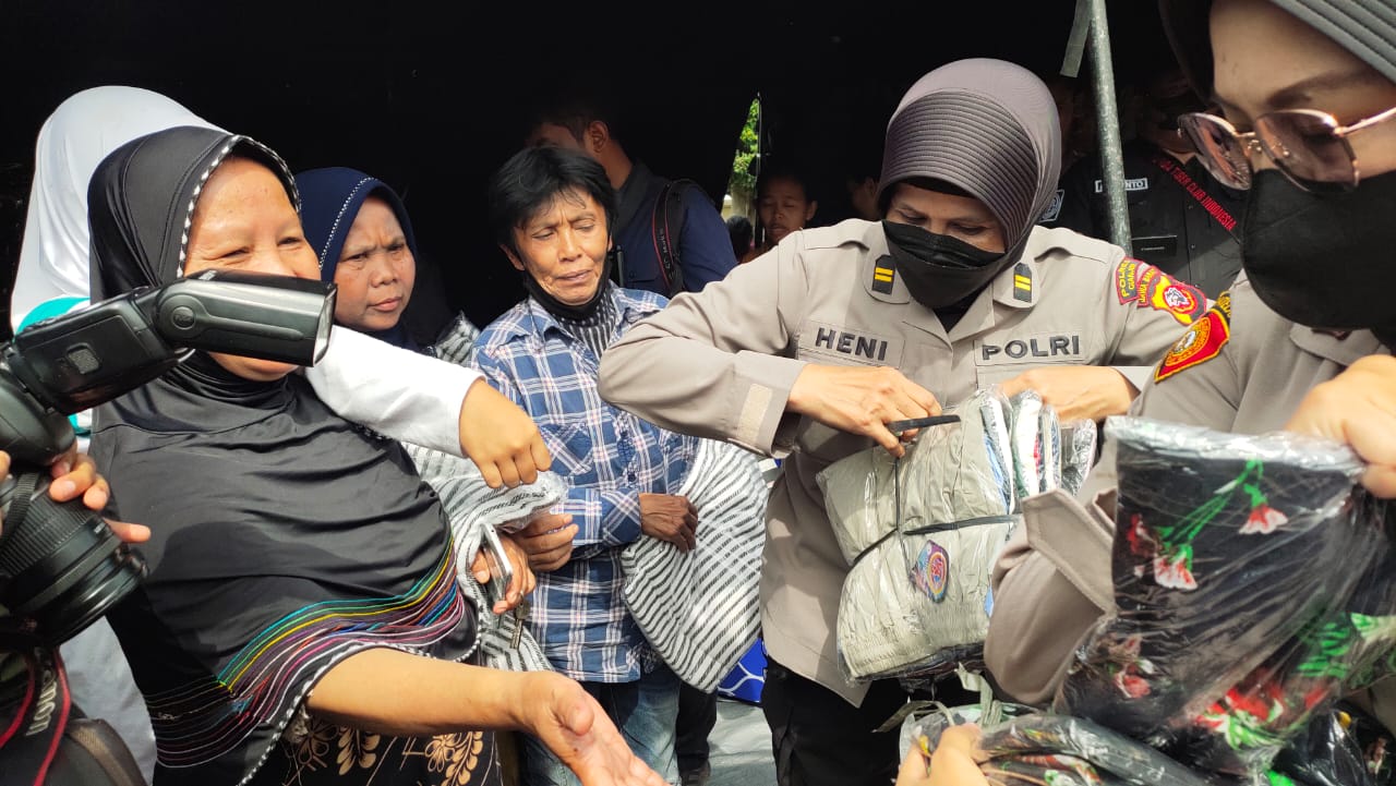 Selain selimut dan kasur busa, istri dari Kapolri Jenderal Listyo Sigit Prabowo juga membagikan pakaian dan celana untuk para korban yang rumahnya luluh lantak akibat gempa magnitudo 5,6 SR, pada Senin (21/11/2022) siang kemarin.