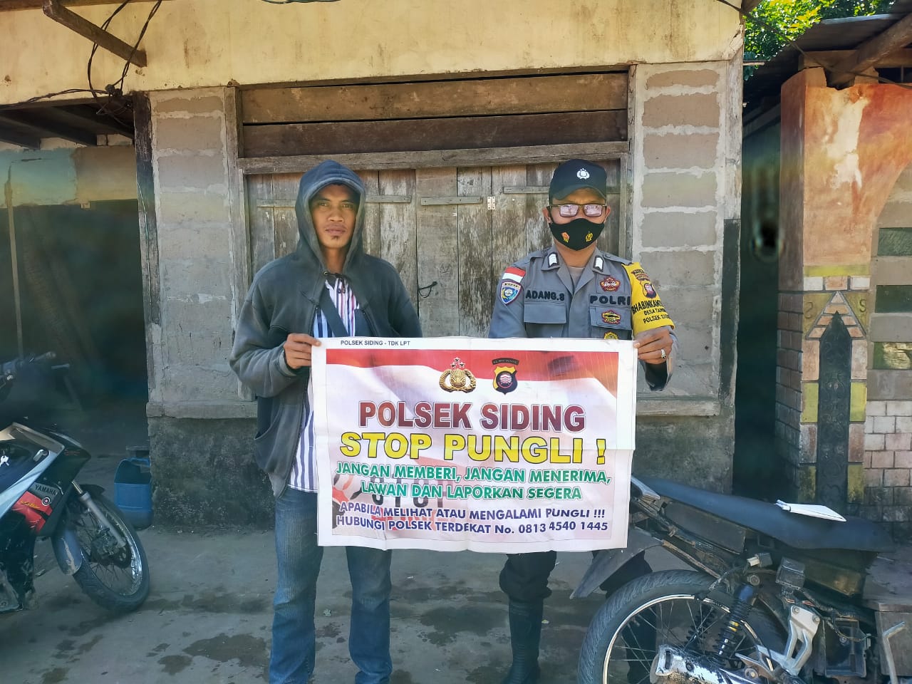Bhabinkamtibmas Polsek Siding Bripka Adang menyampaikan sosialisasi stop pungli ini agar masyarakat memahami dan tidak menjadi korban oleh oknum yang menyalahi kewenangan nya.