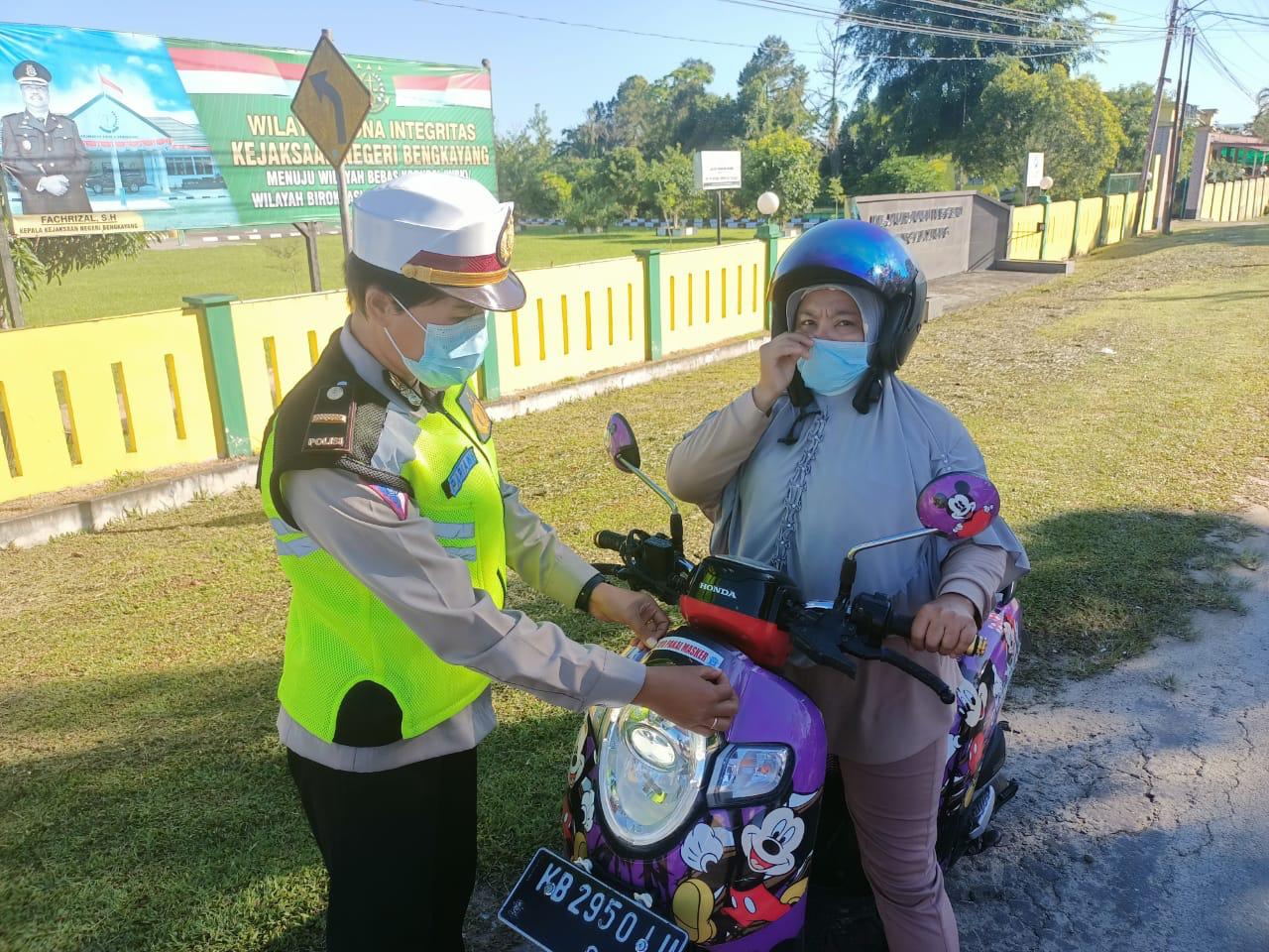 Hal itu pun dilakukan sebagai pengingat agar masyarakat khususnya pengguna jalan yang melintas di wilayah hukum Polres Bengkayang selalu ingat akan protokol kesehatan (prokes).