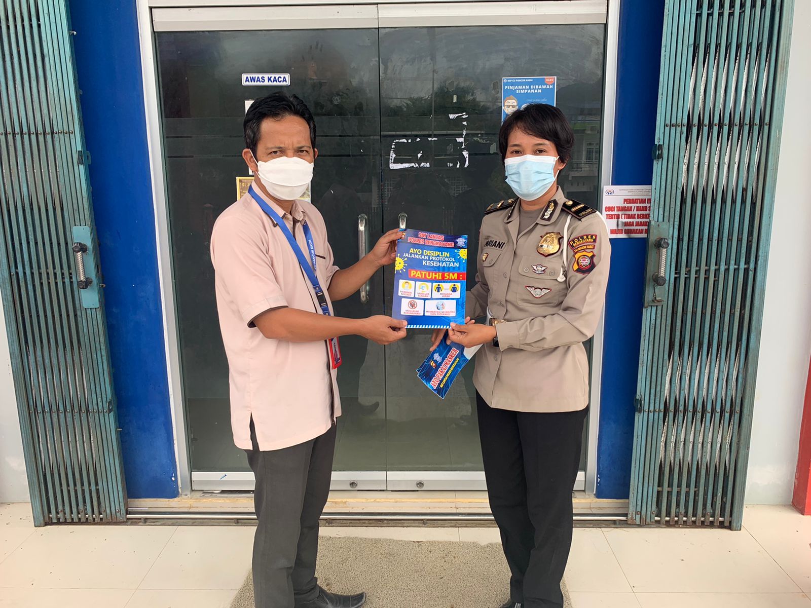 Selain memberikan masker secara gratis, pihaknya juga melaksanakan sebar brosur kepada para pengendara yang berada di Pasar Bengkayang.